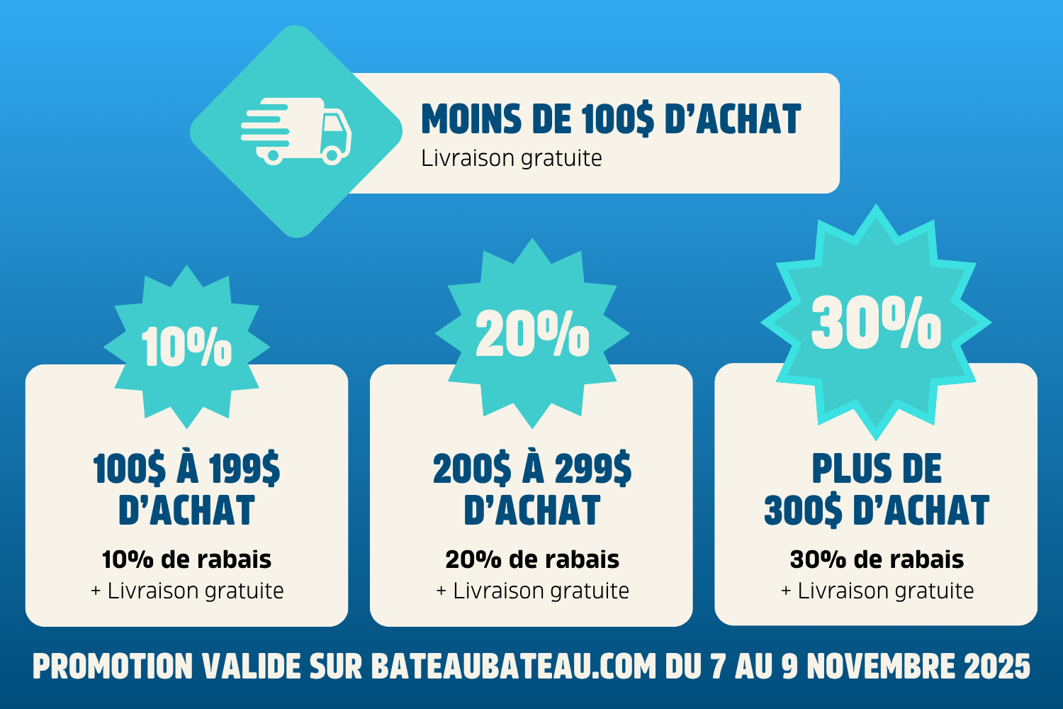 Chaque personne qui s'abonne à notre infolettre est considérée comme un membre VIP de Bateau bateau. On a envie de créer un sentiment d'exclusivité autour de notre infolettre, c'est pourquoi notre liste est épurée une à deux fois par année pour ne garder que les personnes qui la consultent vraiment. Il n'y a aucune obligation à s'abonner. Pas de rabais. Pas de concours. Pas de pression.
